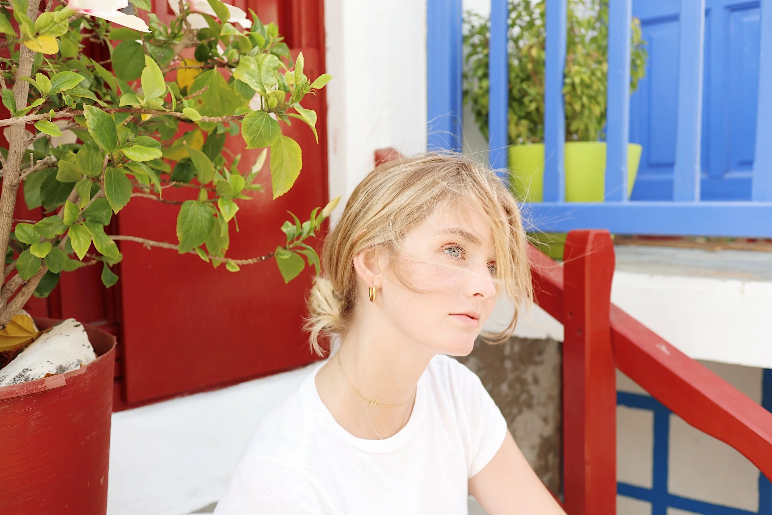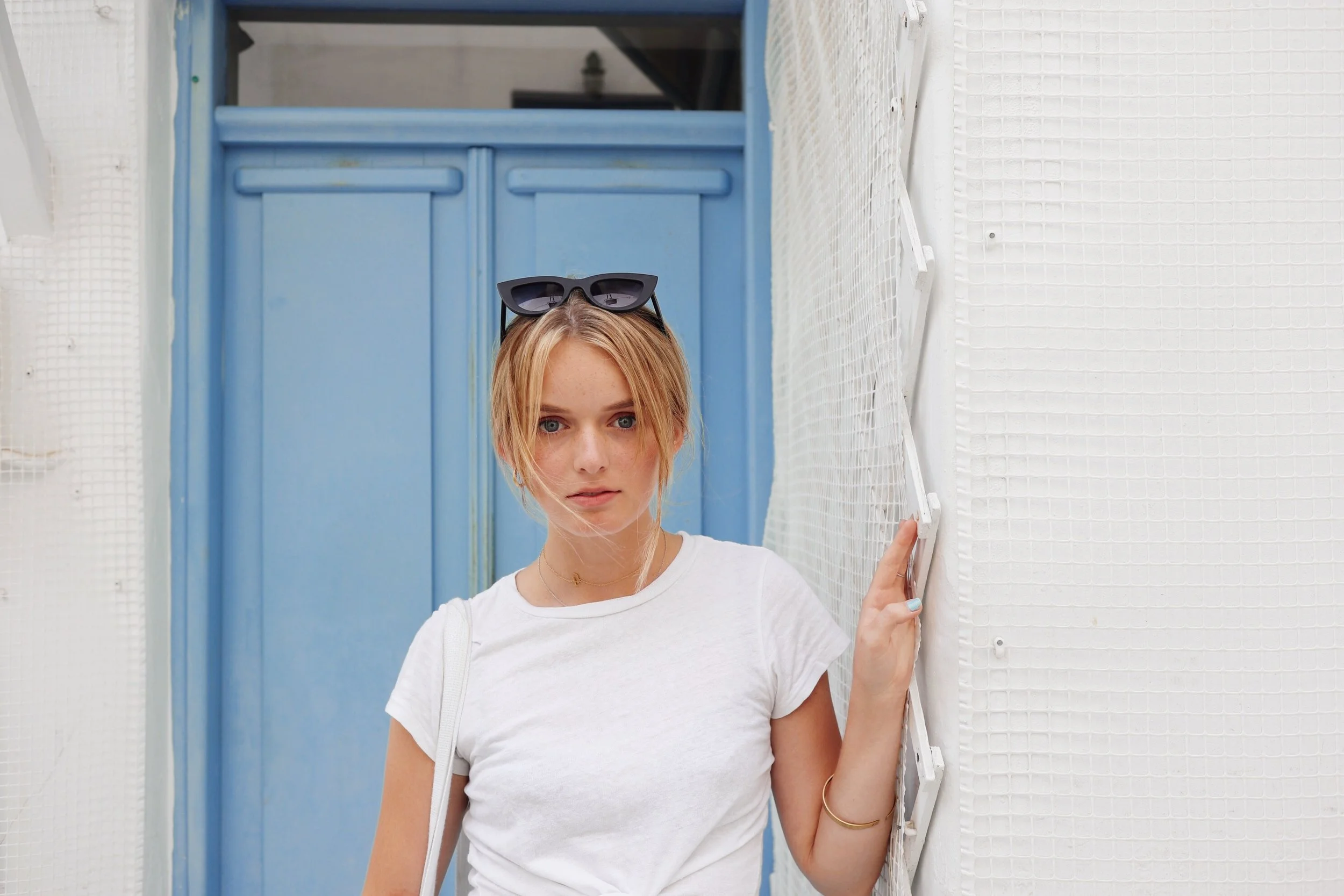For my first outfit out in the town sans swimsuit, I wore lose floral Topshop shorts paired with a RE/DONE white tee. The climate only aloud for the simplest and lightest of outfits.